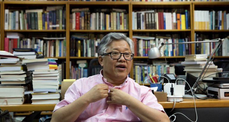 Le pasteur Jin Mingri, interviewé à l’église Sion à Pékin, en Chine (Ng Han Guan / AP)